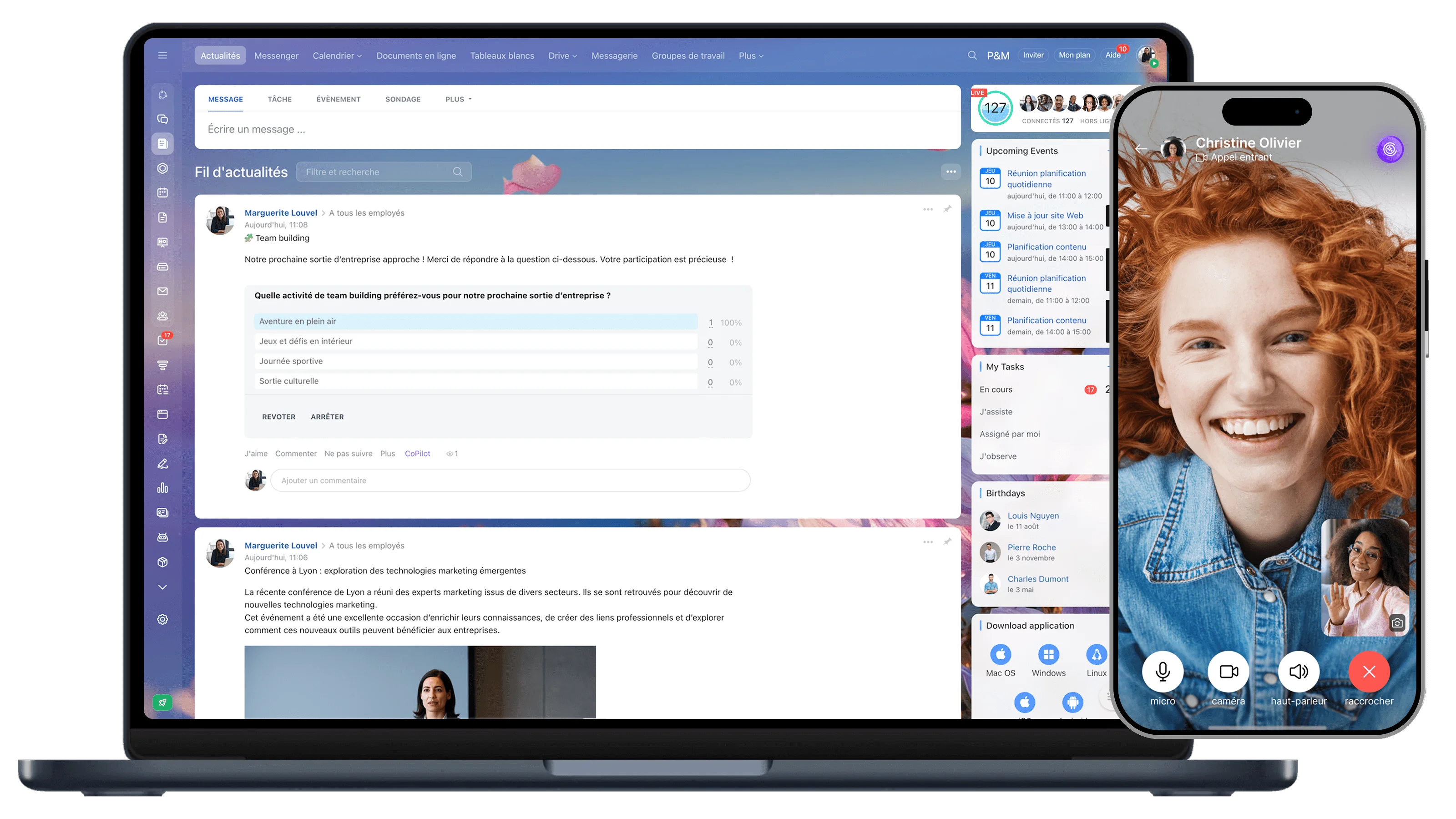 Vous pouvez accéder à Bitrix24 via un navigateur, l'application mobile (iOS et Android) ou l'application pour ordinateur (Mac et Windows)