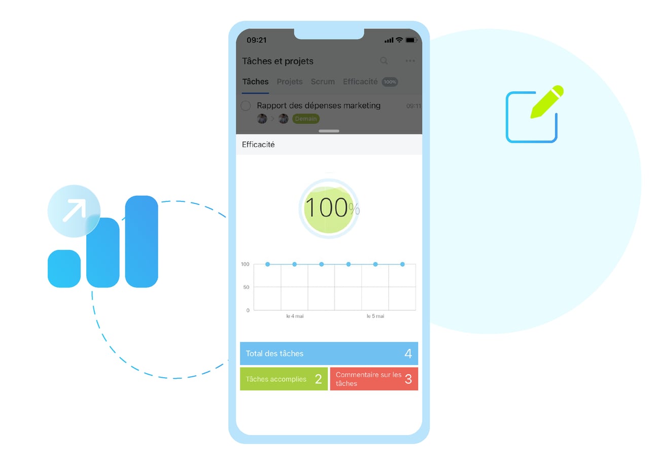 La génération de rapports de tâches intelligents vous indiquera précisément les tâches en cours, terminées ou en retard pour chacun des membres de votre équipe.