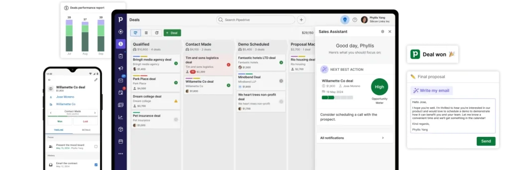 Freshsales est particulièrement adapté aux PME qui ont un service client actif ou des équipes commerciales au téléphone. Il propose une solution complète avec scoring, campagnes, téléphonie VoIP et automatisations.