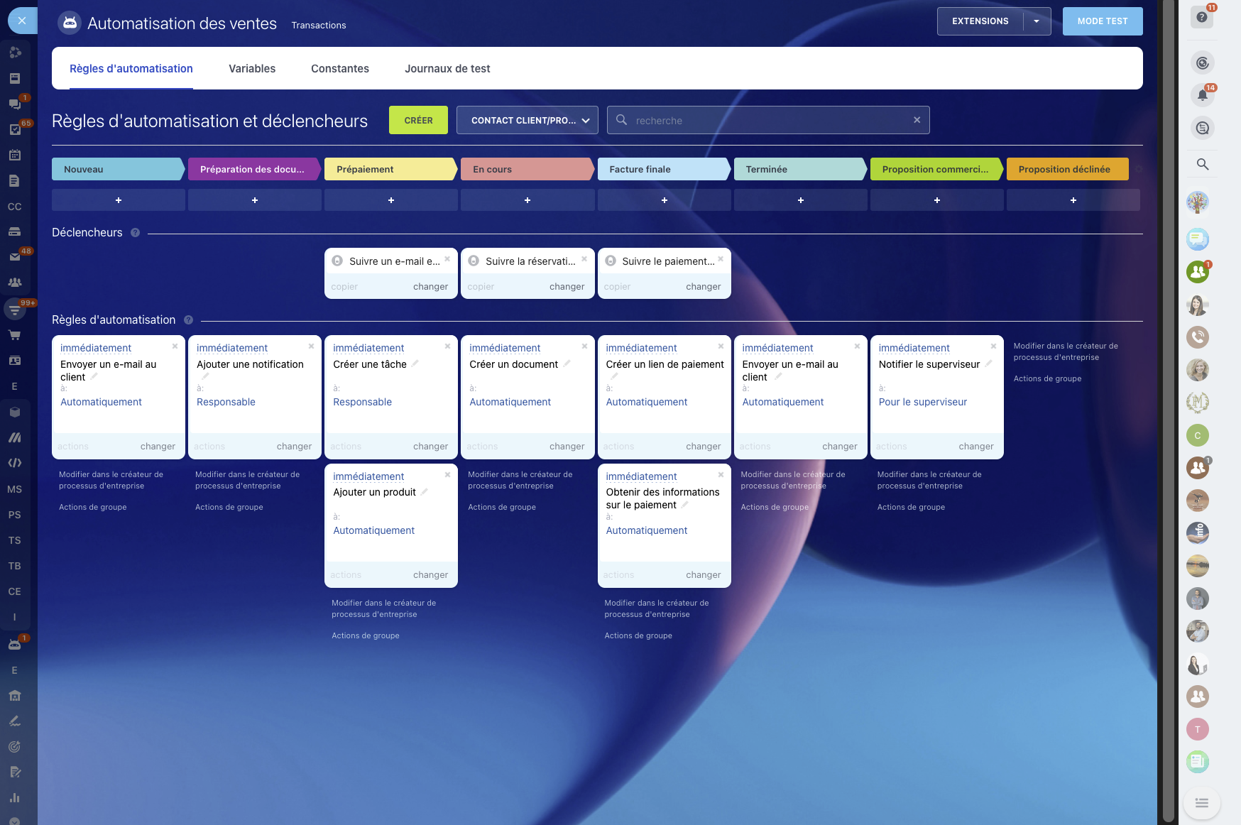 Allégez votre charge, éliminez les erreurs humaines et rendez le processus de vente encore plus fluide. Tout cela est facilement réalisable avec nos règles d'automatisation et nos déclencheurs CRM.