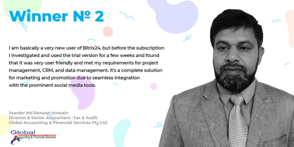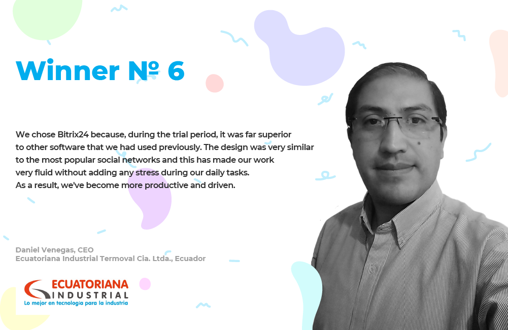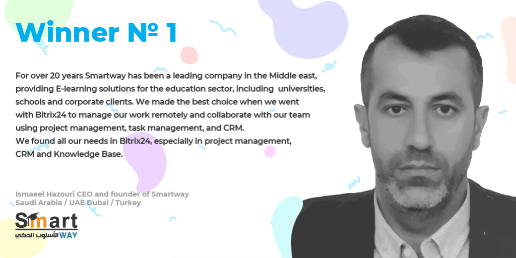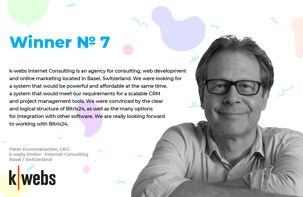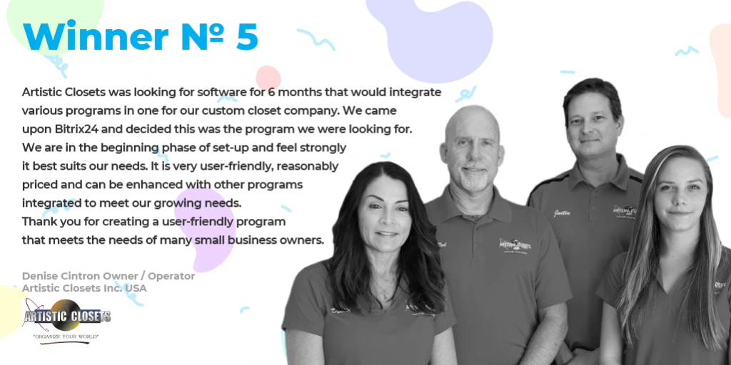 Sur la photo ci-dessus vous pouvez voir notre gagnant parmi nos anciens clients, celui qui utilise Bitrix24 depuis 8 ans ! Voici son site web.