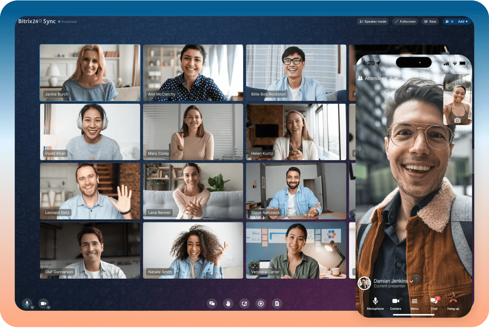 Découvrez la nouvelle version mise à jour et améliorée de nos appels vidéo, qui s'appelle désormais Bitrix24 Sync. Elle gardera toujours votre entreprise unie et facilitera la collaboration : nous venons de lui donner un nouveau design et une nouvelle sensation.