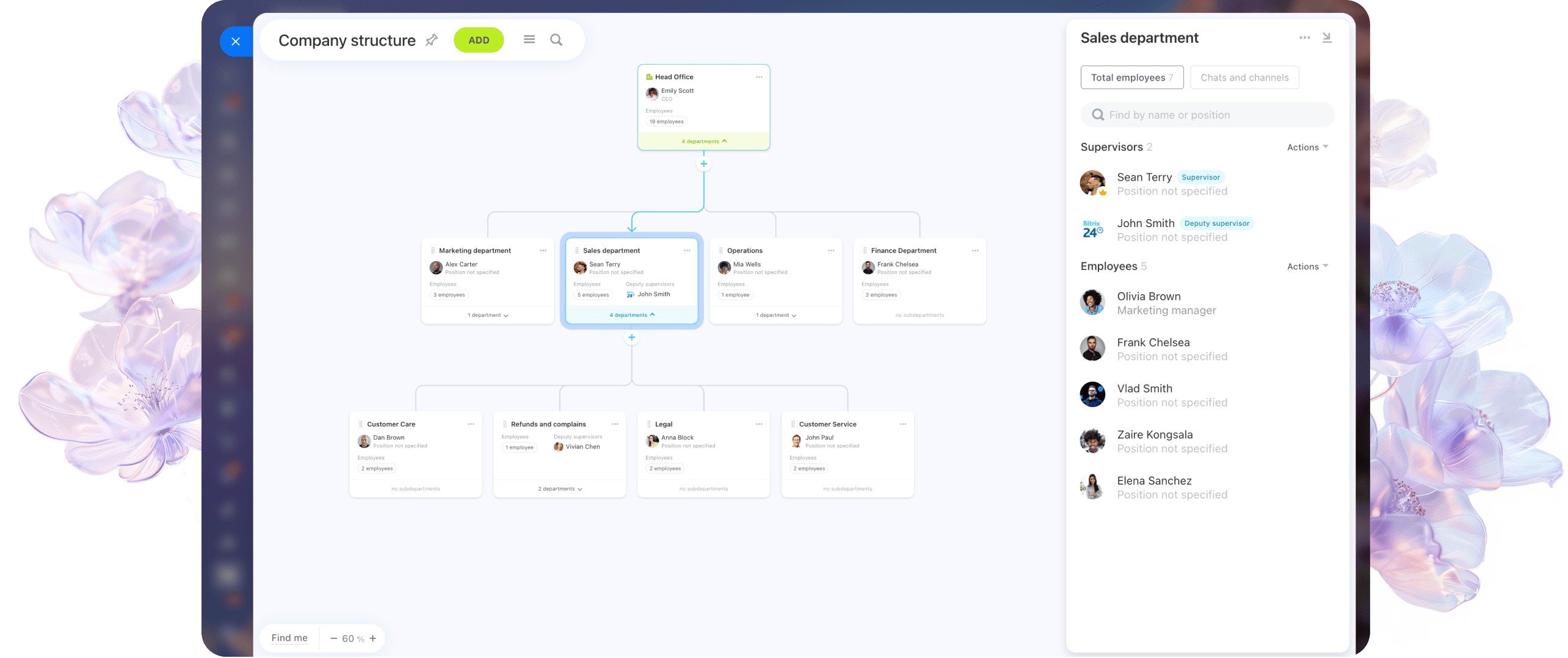 Obtenez une vue d'ensemble de votre organigramme et une flexibilité dans la gestion des équipes. La nouvelle Structure de l'entreprise vous permet de déplacer, d'attribuer et de réorganiser par simple glisser-déposer, car les meilleures équipes ont besoin de structures fluides et adaptables.