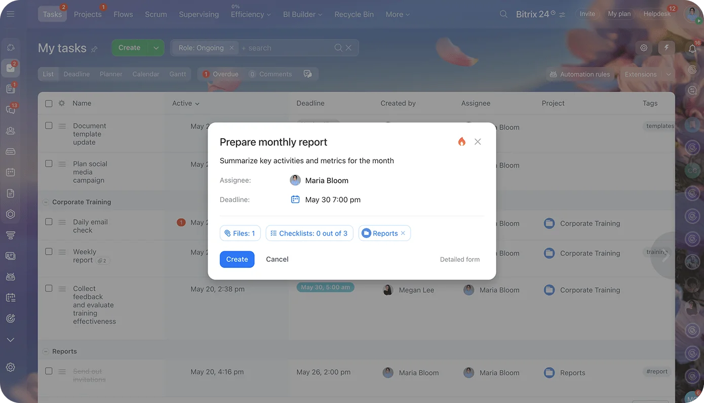 Presque toutes les sections de l'interface ont été repensées pour réduire l'encombrement visuel et améliorer la lisibilité, offrant une expérience de Bitrix24 plus fluide et plus claire.