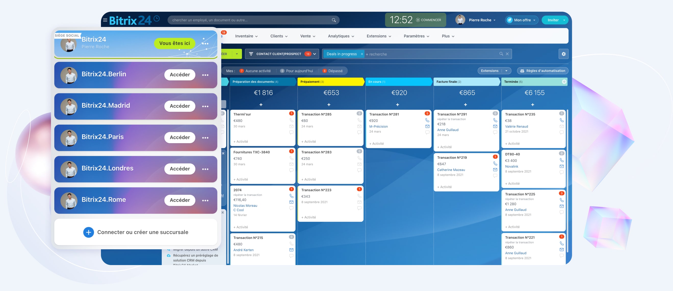 votre bureau, c'est là où vous êtes. Bitrix24 vous permet de trouver rapidement les informations concernant un client/transaction existant ou d'en ajouter un nouveau. Restez en contact avec votre équipe, planifiez votre journée, recevez les paiements, tout cela grâce à notre CRM mobile.
