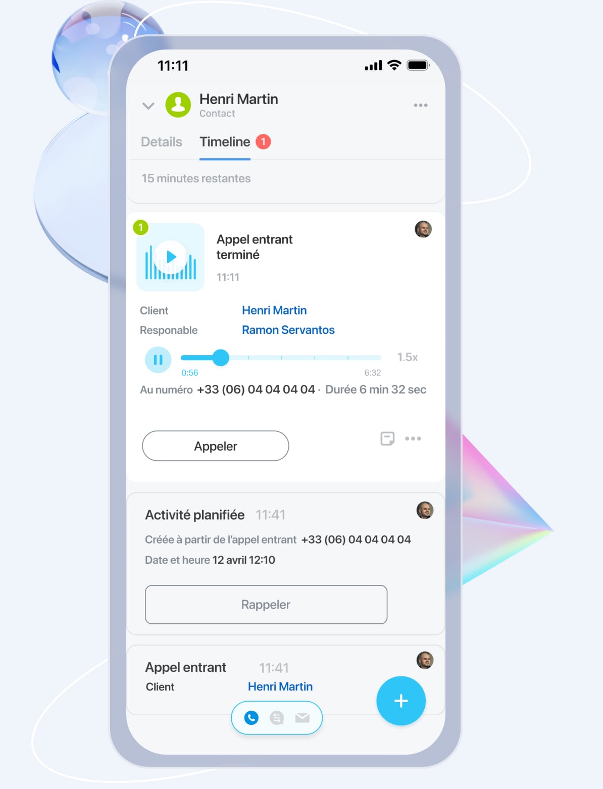 Les appels entrants et sortants peuvent être enregistrés sur la fiche CRM de la transaction correspondante.