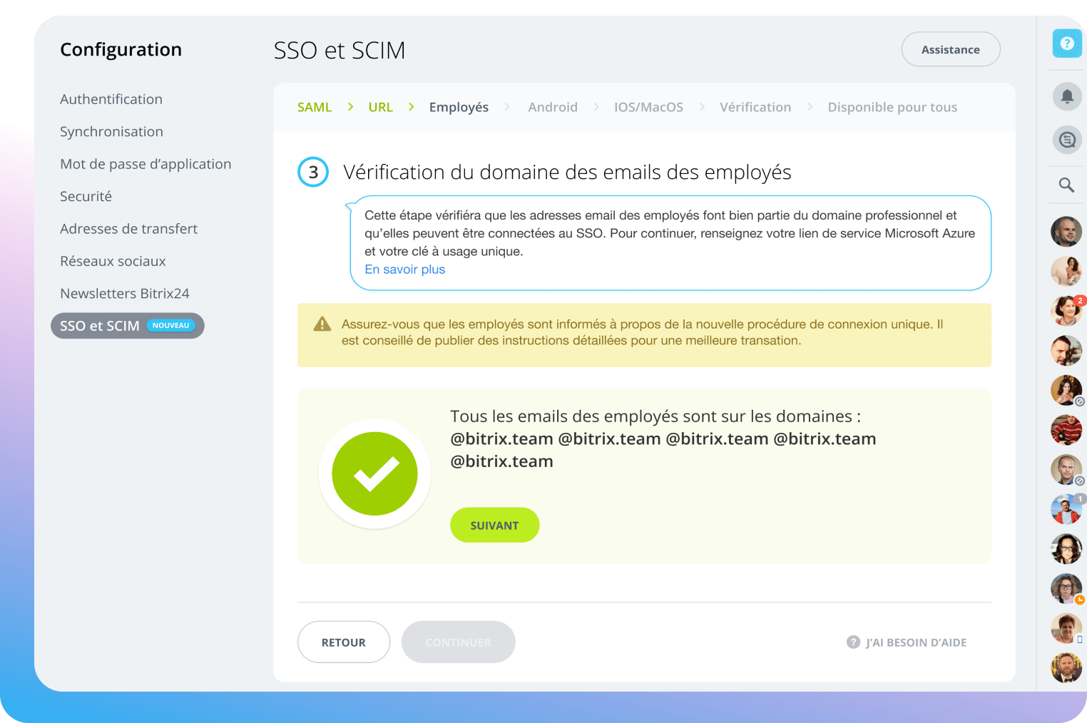 Vos employés peuvent utiliser un identifiant unique pour se connecter à diverses applications et services, y compris Bitrix24