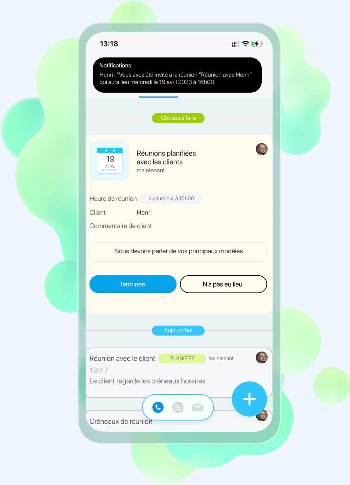 Les événements sont sauvegardés sur le CRM pour que vous puissiez toujours revoir le déroulement d'une réunion
