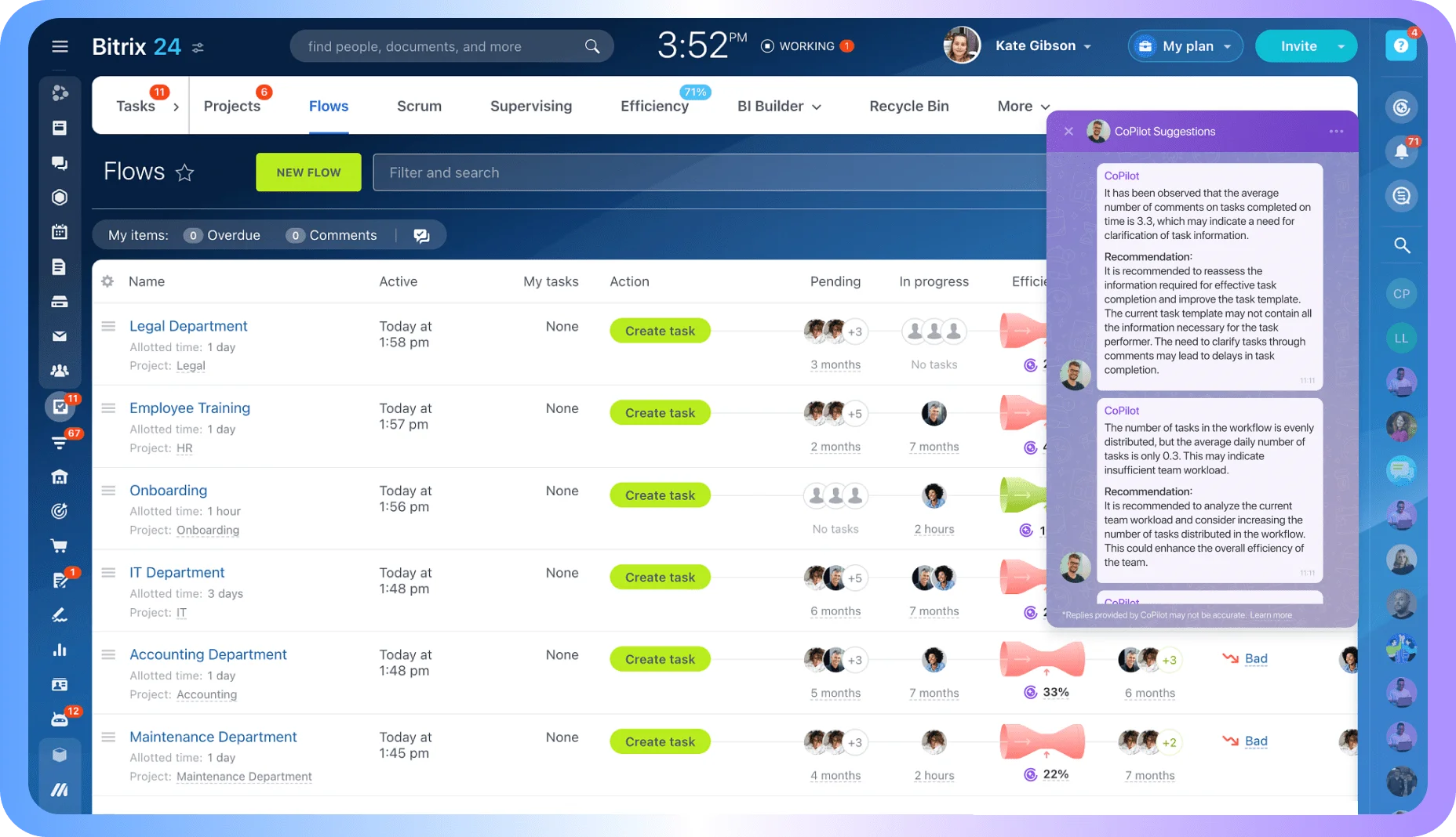 Grâce à CoPilot qui analyse vos flux de travail en temps réel, vous pouvez obtenir des rapports générés par l'IA sur l'efficacité des flux de travail et des recommandations pour les améliorer. Cela vous permet d'identifier et de corriger les goulets d'étranglement potentiels avant qu'ils n'affectent la productivité de votre équipe.