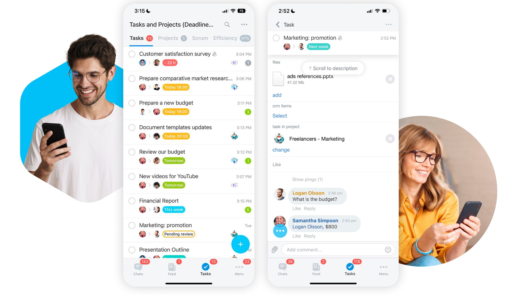Gérez votre travail, votre équipe et vos clients en déplacement avec l'application mobile Bitrix24.