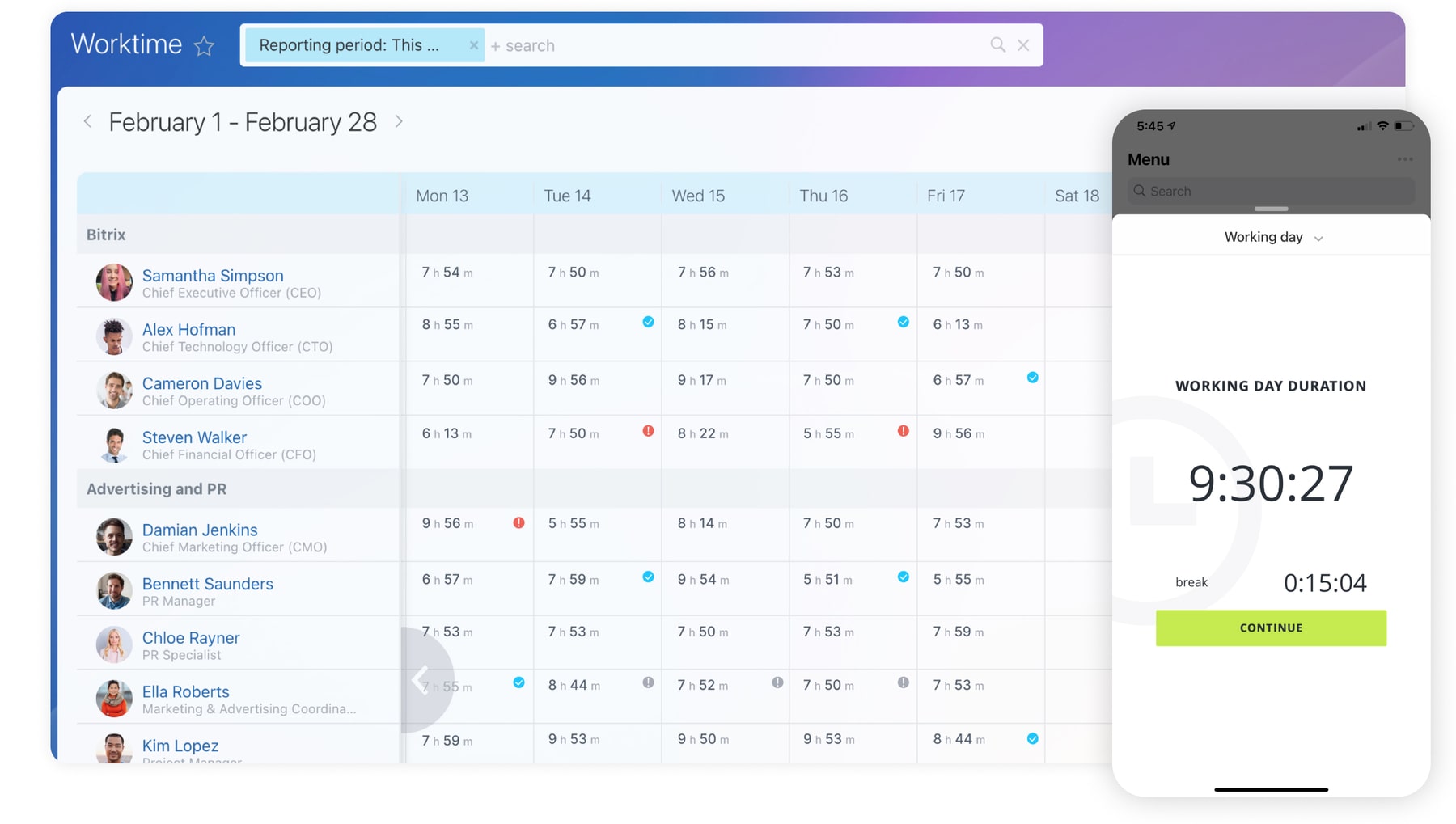 Soutenez votre équipe RH en lui facilitant la tâche. Suivez le temps et les avantages des employés, élaborez des rapports, créez des factures, et plus encore.