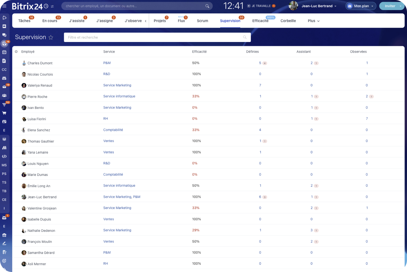 Améliorez les performances de votre équipe et réalisez plus avec moins en utilisant le suivi des performances des employés de Bitrix24.
