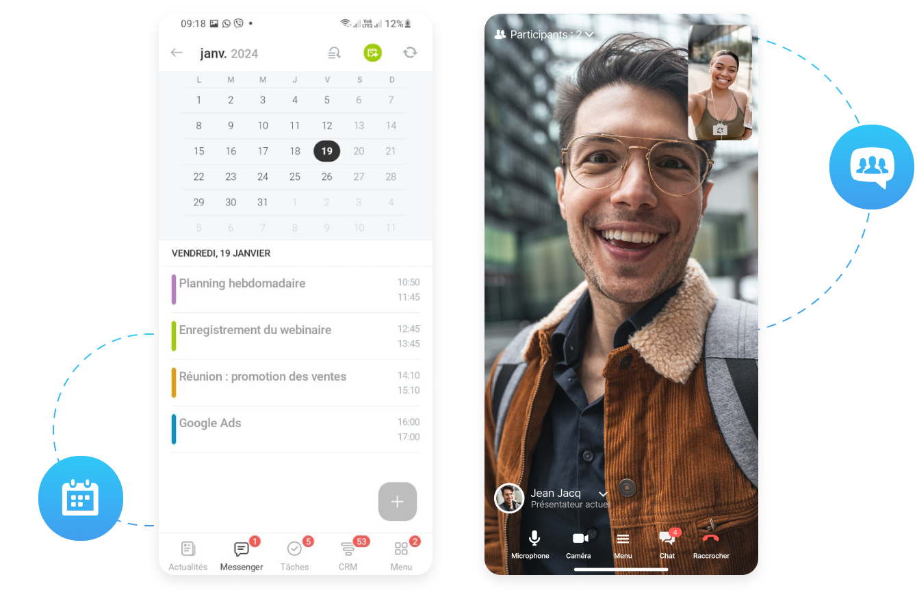 Vous avez besoin de discuter d'un problème lié à une tâche ? Lancez une réunion en ligne rapide avec tous les participants à la tâche directement depuis votre smartphone.