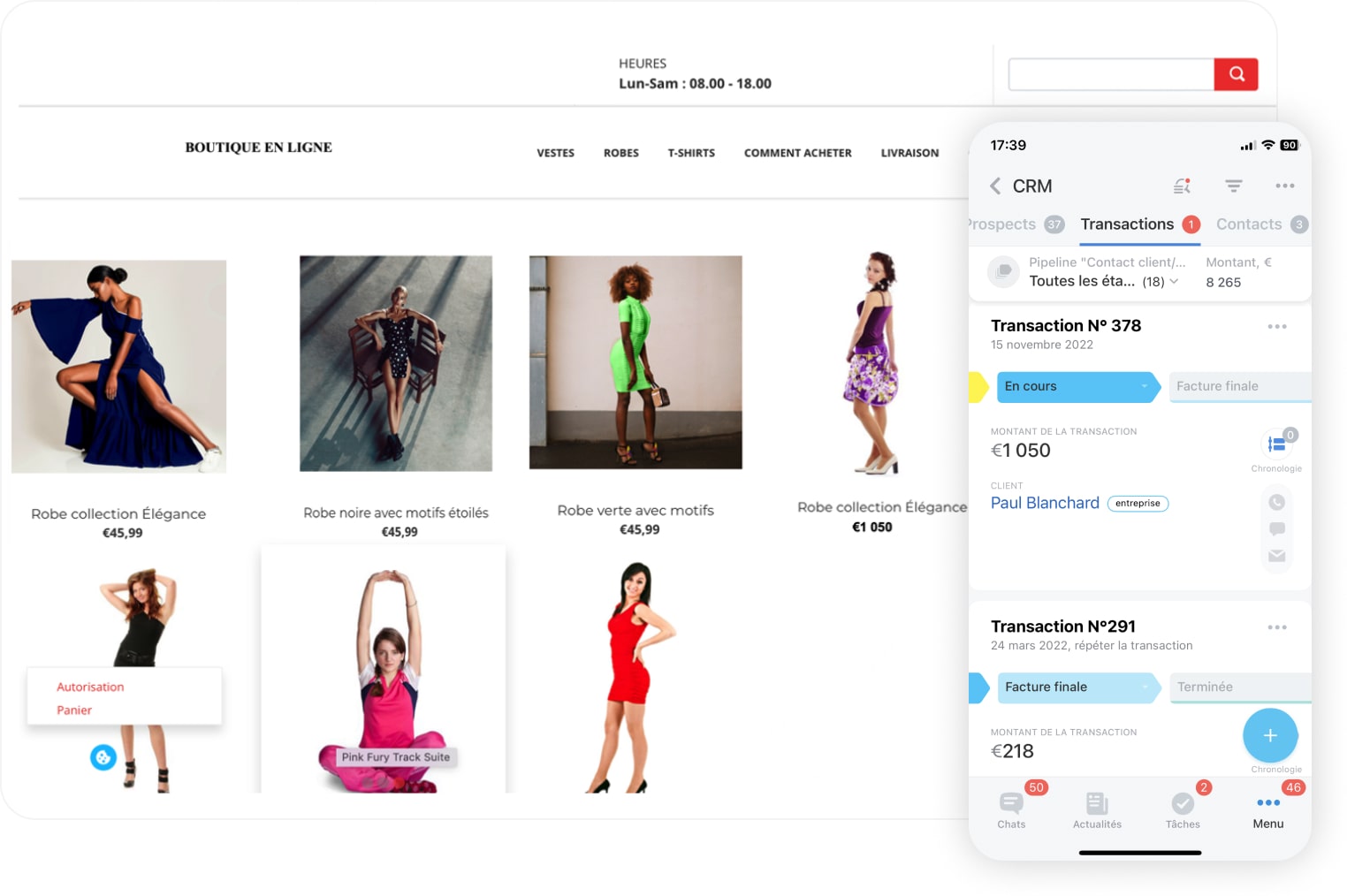 Créez une boutique en ligne intégrée avec CRM, catalogue de produits, gestion des stocks, paiements et plus encore.