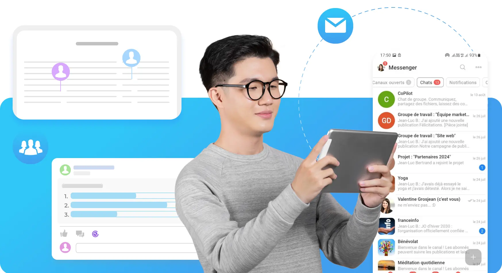 Bitrix24 peut être associé à plusieurs dizaines d'intégrations disponibles sur le Market Bitrix24. Vous pouvez aussi créer vos propres applications depuis le REST API.